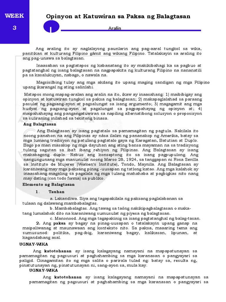 Week 3 Opinyon At Katuwiran Sa Paksa Ng Balagtasan