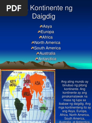 Mga Kontinente Ng Daigdig. 14 na bahagi lamang ng kalupaan ng Asya. Ang Antartiko 1 Ingles.
