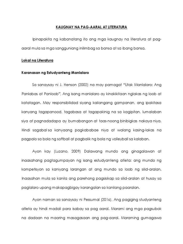 Kaugnay Na Pag Aaral At Literatura