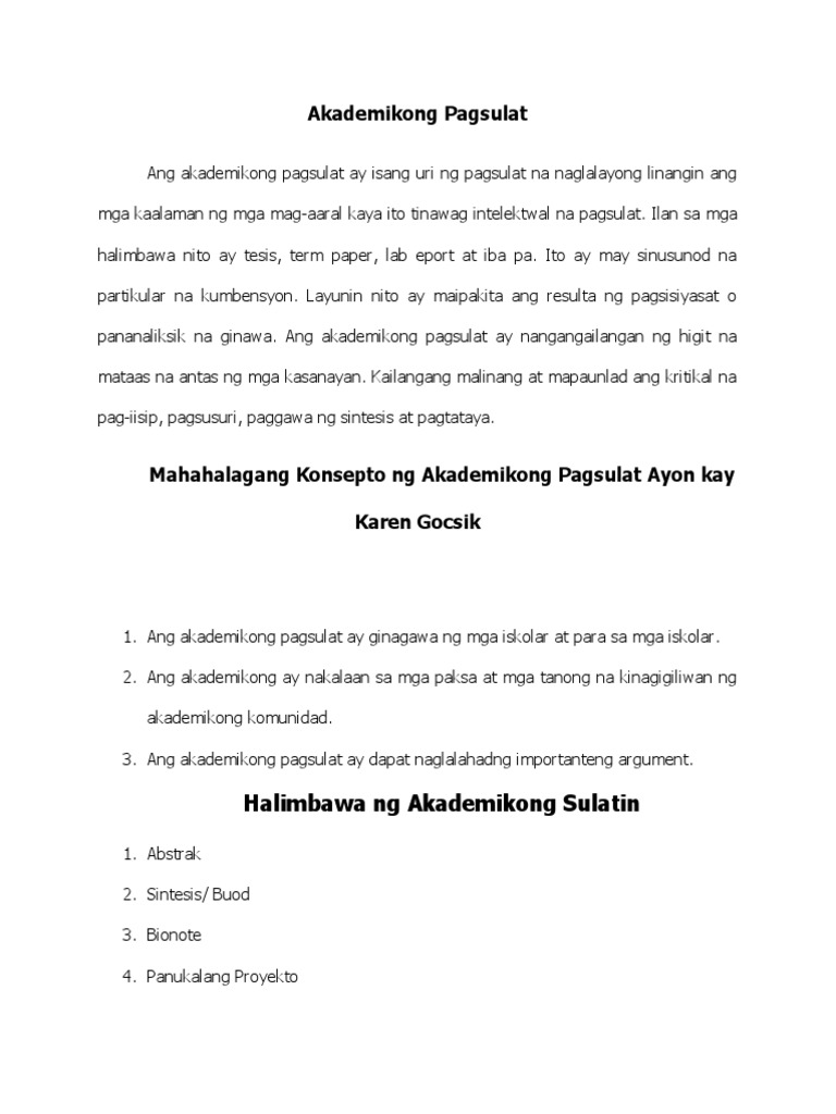 10172016 Mga Halimbawa ng Akademikong Sulatin Abstrak Ang Abstrak ay karaniwang ginagamit sa pagsusulat ng akademikong papel para sa tesis papel siyantipiko at teknikal lektyur at report. Ito ay abstrak tungkol sa mga teknik na ginagamit ng sangka-estudyantehan para makapag-aaal ng husto. 4252019 halimbawa ng abstrak na sulatin tungkol sa edukasyon pananaliksik halimbawa ng abstrak na sulatin.