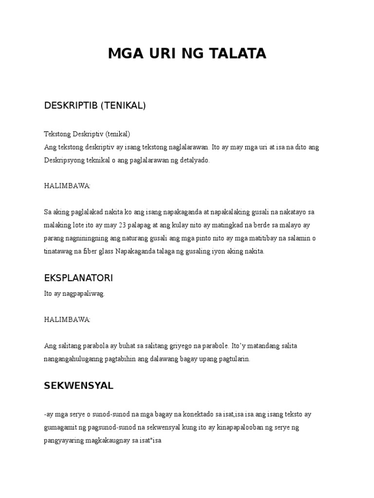 Halimbawa Ng Tekstong Deskriptiv Natasya Halimbawa Story
